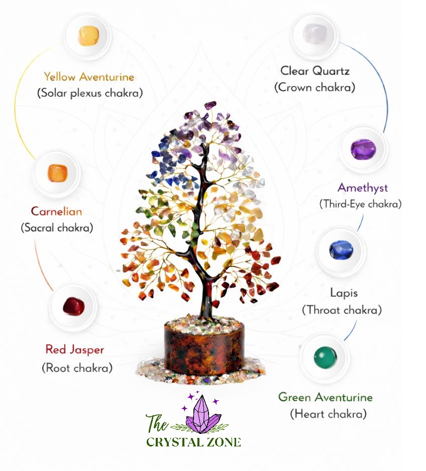 Each branch is adorned with a specific crystal corresponding to a chakra, working together to restore energetic flow, enhance positivity and promote overall well-being.