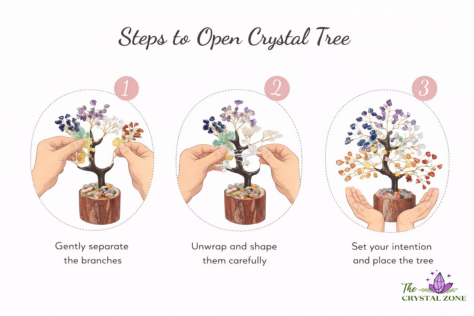Place the tree in your living room, meditation space, work desk or entrance to harmonise energy and create a calming, positive environment. - For Meditation and Healing: